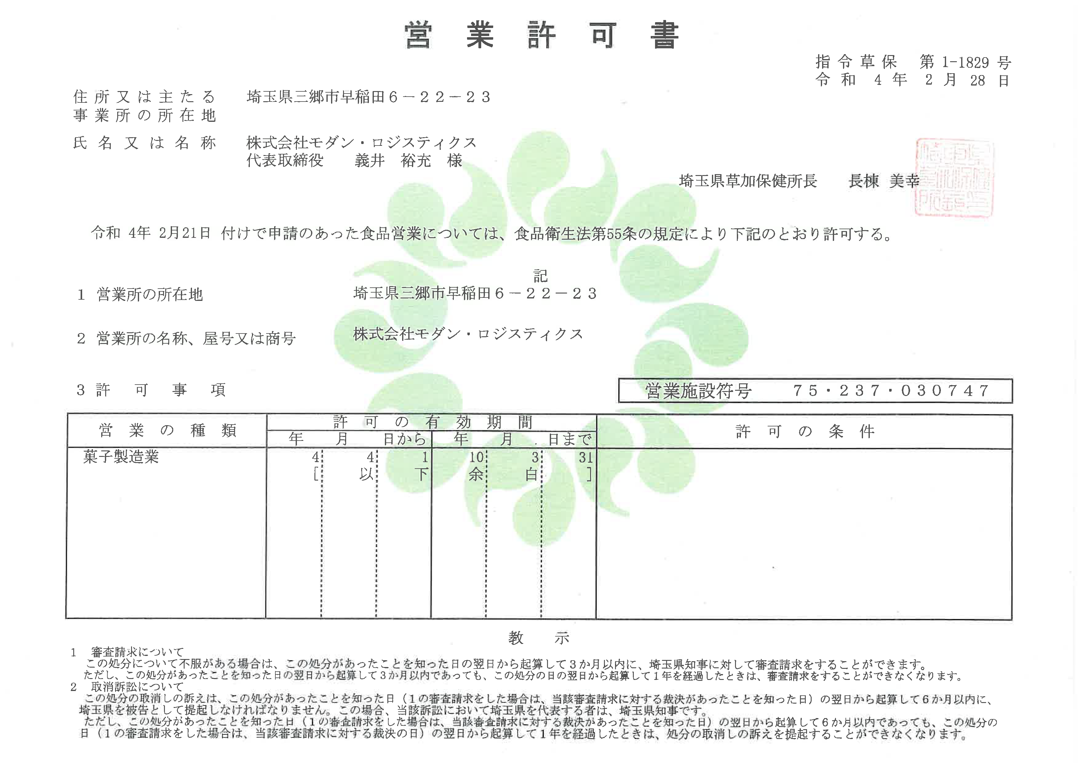 菓子製造業許可を取得したクリーンルームで、衛生管理された梱包・包装が可能。